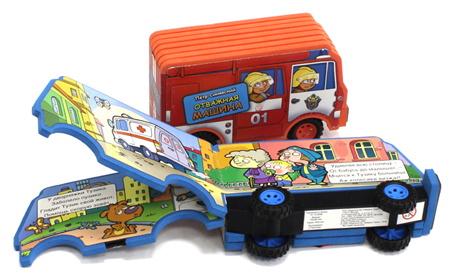 Книжки могут пищать, издавать звуки и открывать глазки и даже...кататься. Лучший подарок мальчишке, увлеченному машинками — книжка с колесиками. Например, "Полезные машинки" со стихотворениями Петра Синявского. С такой машинкой можно играть и ее можно читать.